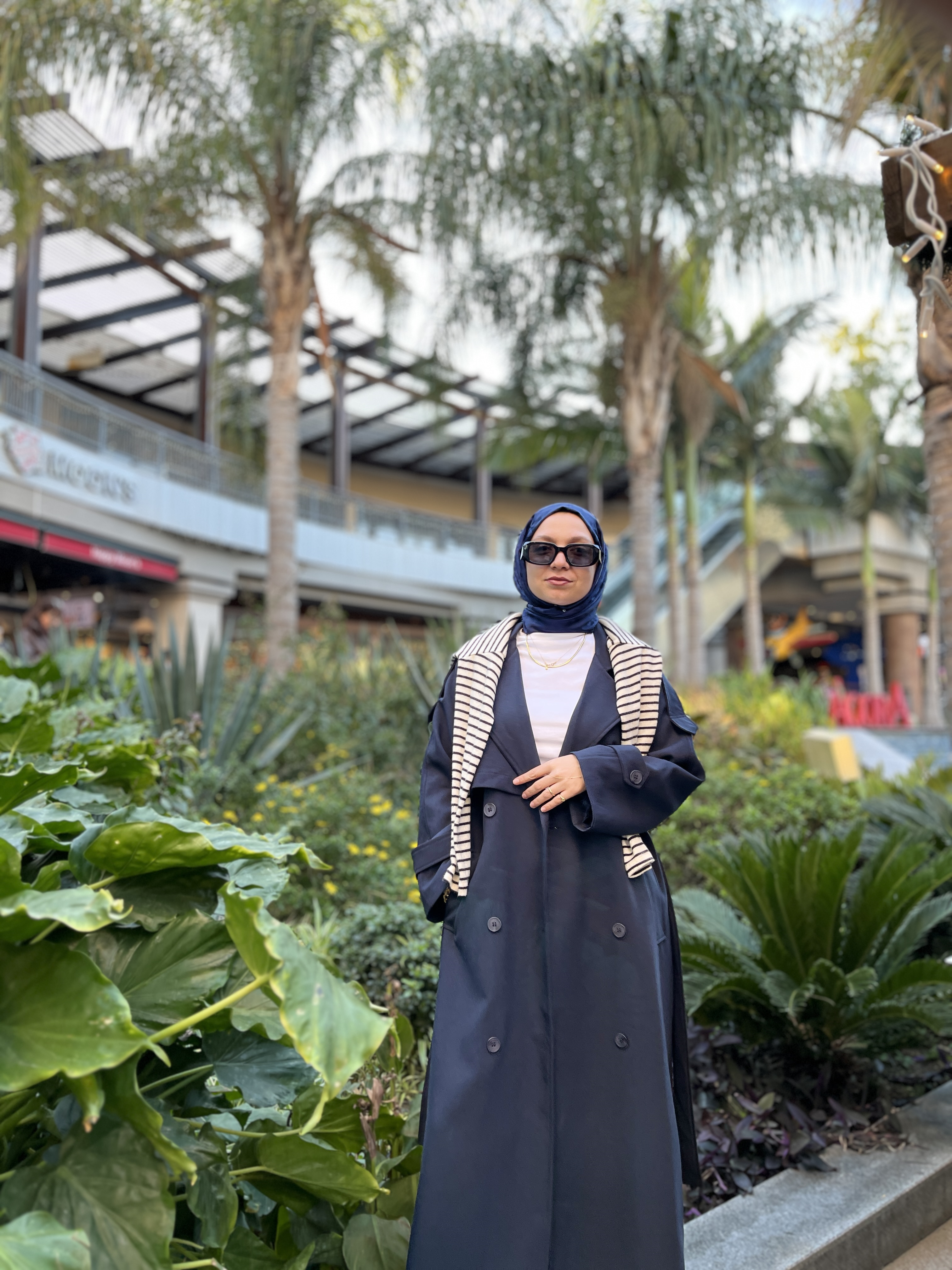 PREMİUM KUŞAKLI UZUN TRENÇKOT-LACİVERT